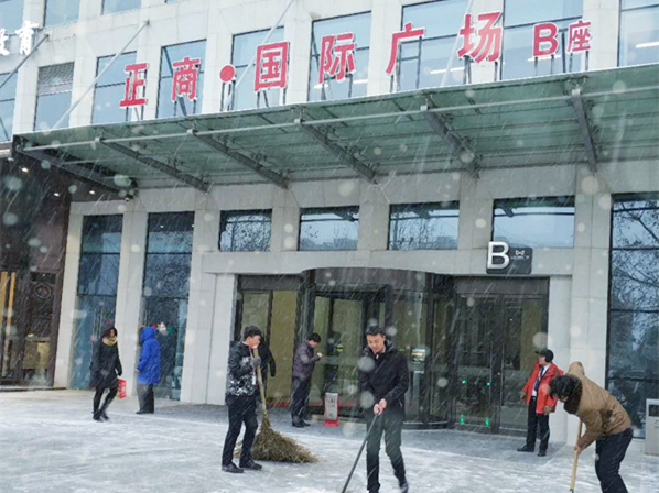 建正和諧大區(qū)掃雪進(jìn)行中……