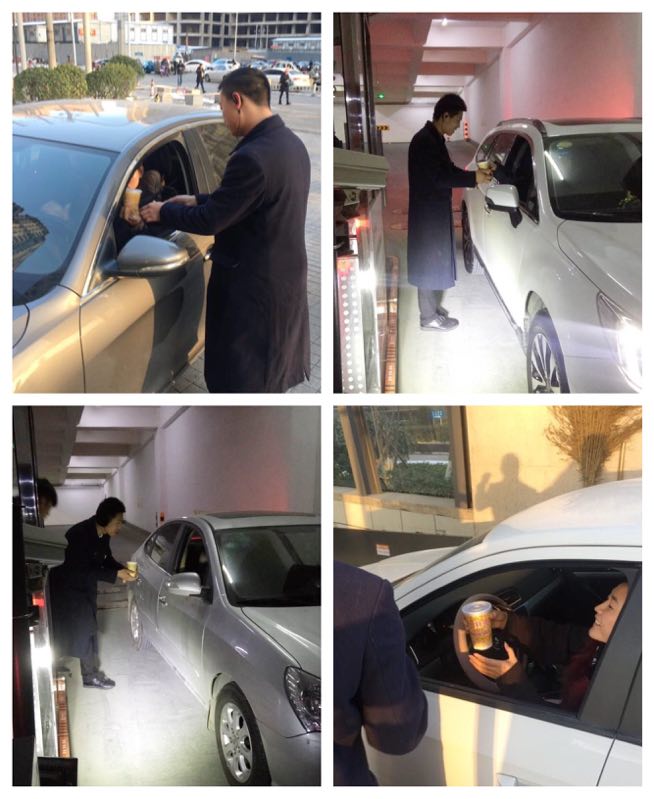 一大早,興業(yè)物聯的工作人員就開始煮姜茶,為了避免冷卻,他們將煮好的姜茶統一裝進了熱水瓶中。然后分成兩組,一組人員為地下室的車主派送,提醒他們天氣冷了要多注意安全。另一組人員則將姜茶送給寫字樓的客戶,關心他們的身體健康。