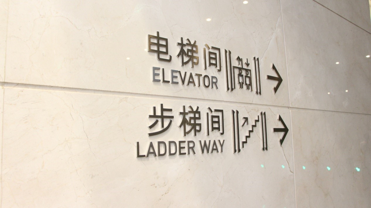 閘機(jī)處清晰的電梯間、步梯間指示標(biāo)識(shí)
