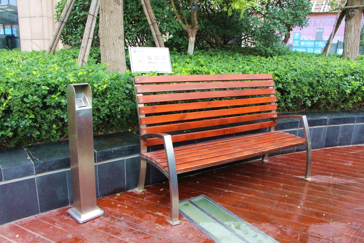 中心廣場臨時(shí)休憩座椅,配備滅煙設(shè)施,設(shè)計(jì)人性化。