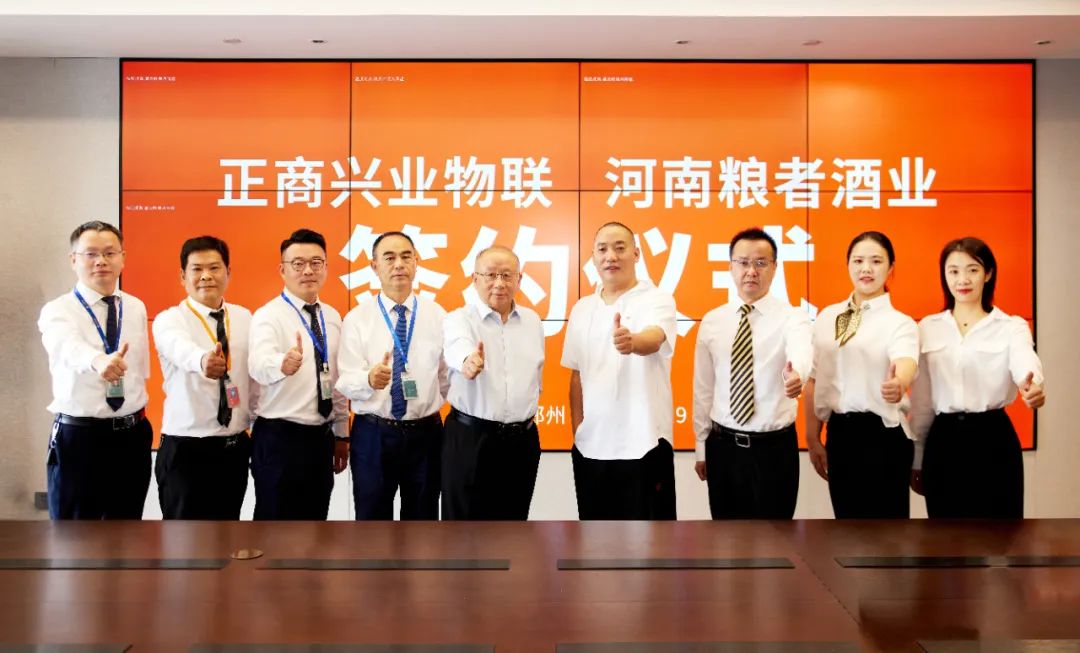 2022年9月19日,正商集團(tuán)旗下上市公司興業(yè)物聯(lián)與糧者酒業(yè)有限公司戰(zhàn)略合作簽約儀式在正商集團(tuán)舉行。正商集團(tuán)董事長張敬國、副總裁陳繼國、副總裁裘明、興業(yè)物聯(lián)董事長朱杰,糧者酒業(yè)有限公司董事長孫輝、恒輝顧問總裁趙中亞、董事長助理兼副總經(jīng)理王婷、副總經(jīng)理劉倩共同出席本次簽約儀式。
